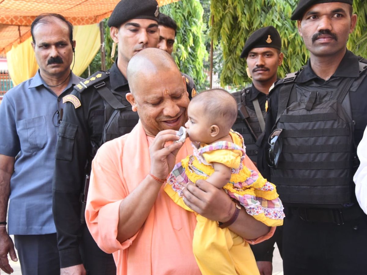 सोमवार सुबह मुख्यमंत्री एवं गोरक्षपीठाधीश्वर योगी आदित्यनाथ जब जनता दर्शन में लोगों की समस्याएं सुन रहे थे। एक-एक कर लोगों से मिलते हुए उनकी नजर कुर्सी पर बच्ची को गोद में लिए बैठे दिव्यांग विवेक पर पड़ी। मंदिर परिसर में सेवारत होने से सीएम उसे पहचानते हैं। पूछ पड़े, क्या समस्या है। विवेक ने बच्ची को गोद में लिए ही हाथ जोड़ लिए। उन्हें अपनी मन्नत वाली बात बताई तो मुख्यमंत्री मुस्कुराने लगे। फौरन बिटिया को होड़ में लेकर दुलारने लगे। उधर विवेक घर से खीर बनवाकर लाए थे। मुख्यमंत्री ने बच्ची के मुंह में पहले से लगे निप्पल को निकाला, अपने हाथों से खीर खिलाकर अन्नप्राशन कराया और आशीर्वाद दिया। विवेक का कहना है कि 'महाराज जी' के हाथों बिटिया का अन्नप्राशन होने की खुशी में वह इतने विह्वल हो गए कि एक ख्वाहिश बताना भूल गए। उनके मुताबिक वह बिटिया का नामकरण भी महाराज जी से ही कराना चाहते हैं। आज उन्हें बता दिए होते तो आज ही नामकरण भी हो जाता।